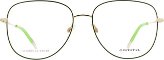 Die Comma Damenbrille vereint Trendbewusstsein mit einem Hauch Extravaganz. Die große, stylische Metallfassung präsentiert sich in einem edlen Grün auf Gold, das für einen modernen und zugleich femininen Look sorgt. Absoluter Eyecatcher: die neongrünen Bügelenden, die dem Design einen frischen, urbanen Twist verleihen. Die leichte Metallkonstruktion sorgt für hohen Tragekomfort, während die großzügige Form der Brille das Gesicht sanft umrahmt und besonders bei mittleren bis größeren Gesichtern perfekt zur Geltung kommt.
